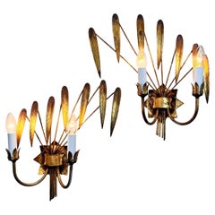 Pair Magnificent Maison Baguès Style French Gilt Iron and Glass Parrot Sconces