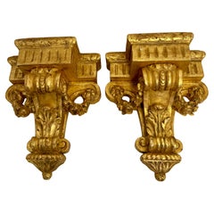 Pair Vintage Italian Hand Carved Gilded Wood Diminutive Wall Brackets