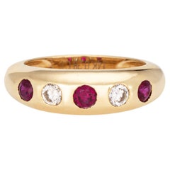 Antique Edwardian 18ct Yellow Gold Diamond Band Ring, Size 6