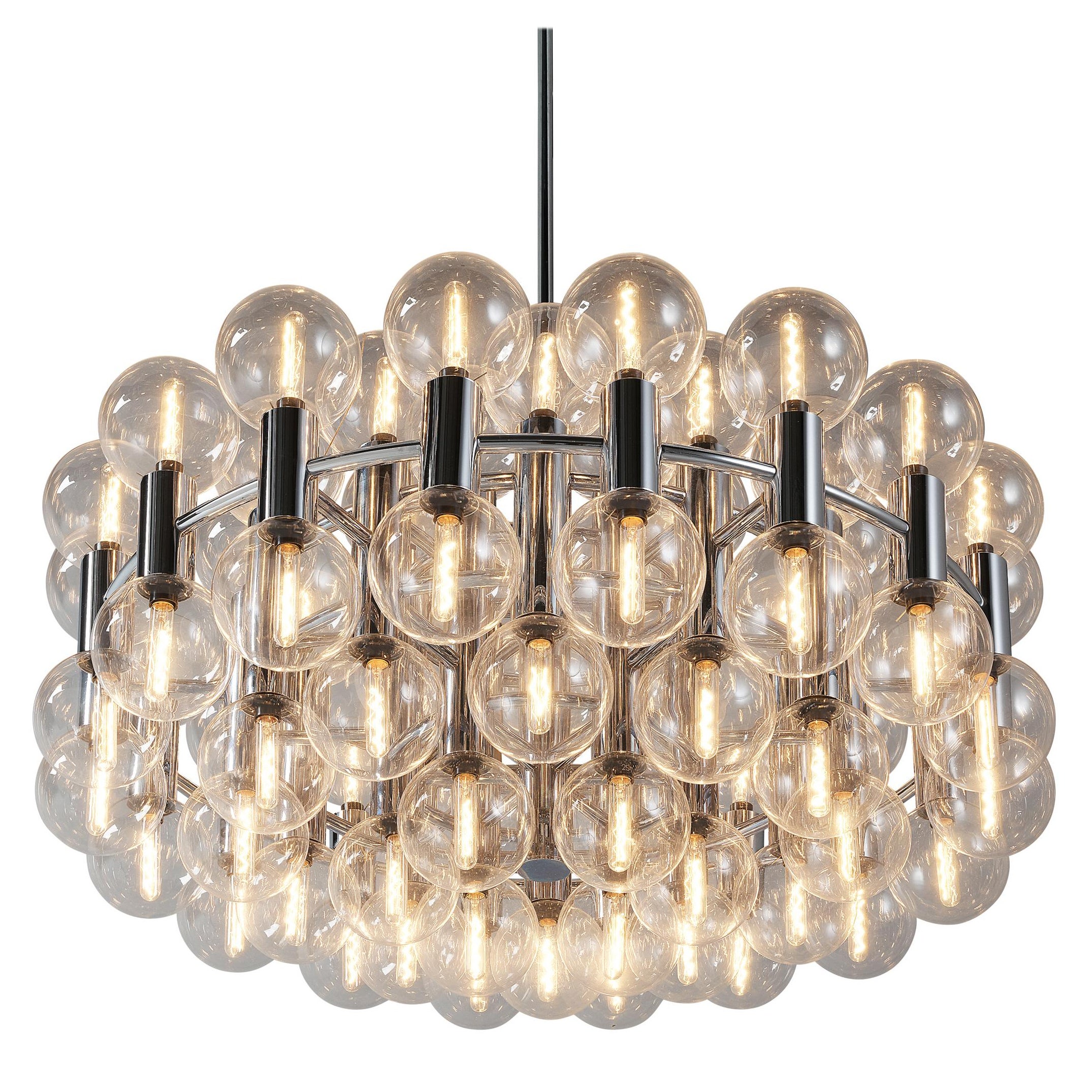 One of Five Bubble Glass Chrome Pendant Lamps by Staff, 1960