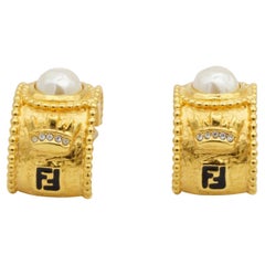 Vintage Chanel logo faux pearl clip on earrings, gold tone