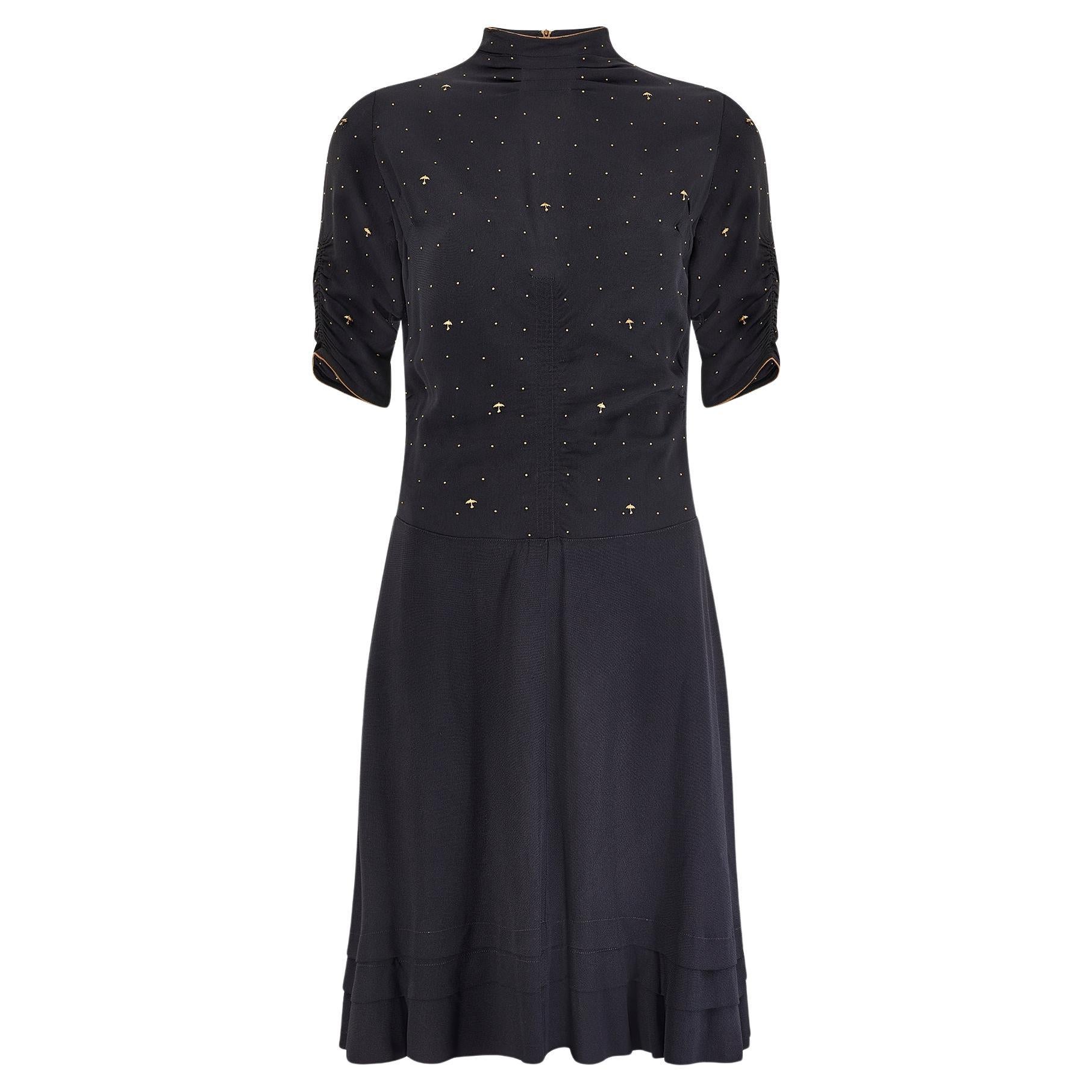 Black knit cocktail dress with covered of round sequin.; Zip and hook&eye closure on the middle back. Acetate lining.