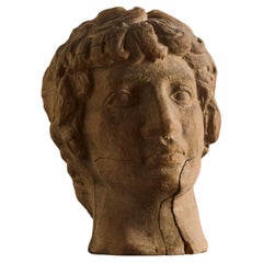 A medium-sized terracotta figurative vase designed as a head with textured, natural surface details and colored cherry reliefs accentuating its playful expression. Suitable for both ...