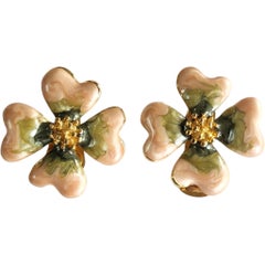 Monique Vedie, Line Vautrin Student Resin Clip Earrings Pistachio Flower