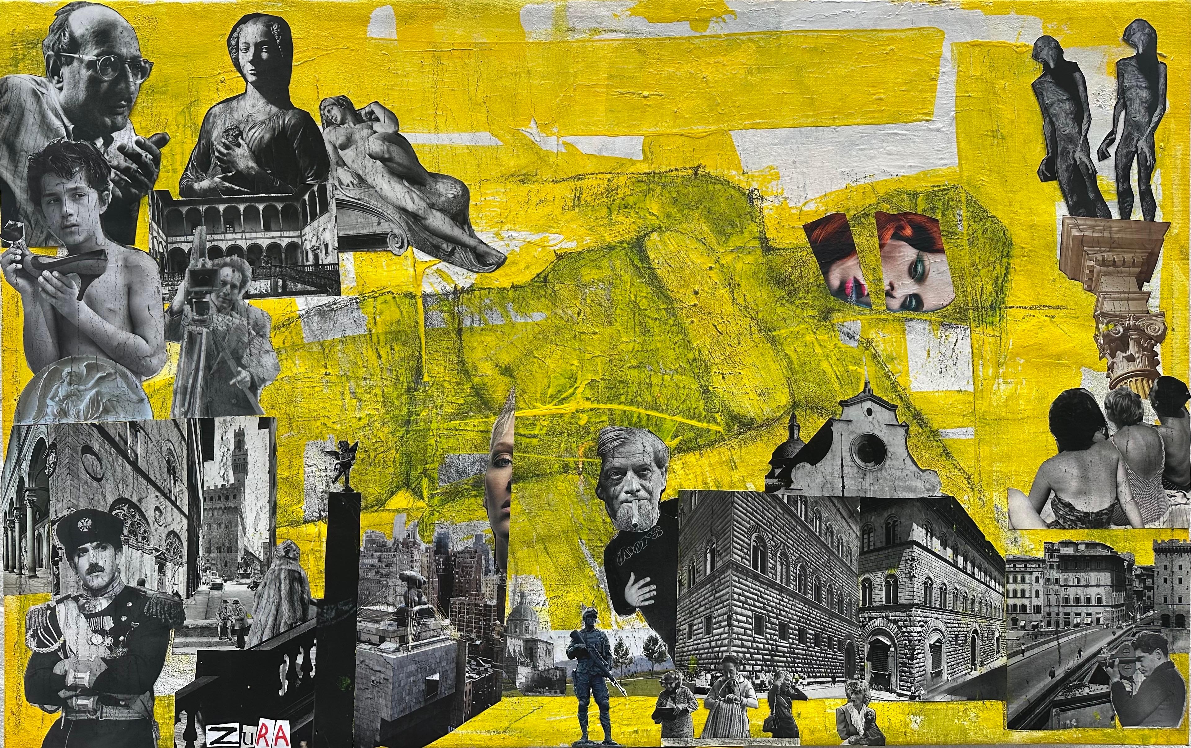 Leinwand, Mixed Media, Acryl, Zeitschriftenpapier