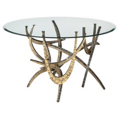 Dieser monumentale ovale Esstisch vereint organische Kunstfertigkeit mit technischer Haltbarkeit. Das von einem Bildhauer gefertigte Stück verkörpert die ausdrucksstarke Sprache der ...