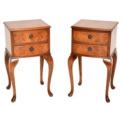 Prächtiges und seltenes Paar von Art Deco Schränken oder Nachttischen. Auffälliges französisches Design aus den 1930er Jahren. Massiver Nussbaum und originale nussbaumfurnierte Stück...