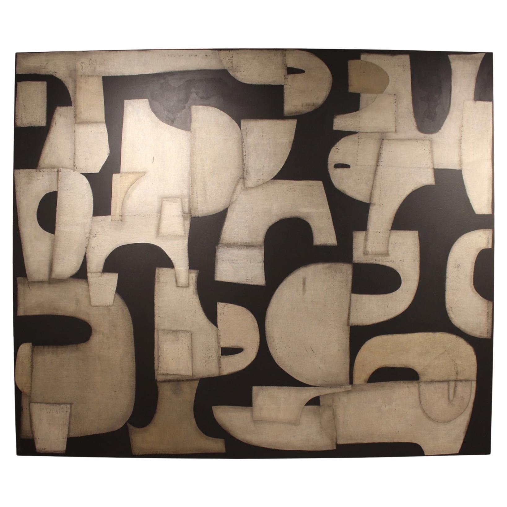 Mattes schwarzes brutalistisches Skulpturales Collage-Kunstwerk in mattem Schwarz