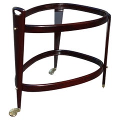 Cesare Lacca Italienischer Servierwagen aus der Mitte des Jahrhunderts, ovales, abgedunkeltes Teakholz und Messing