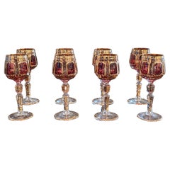 Zeitgenössisches Set mundgeblasener Wassergläser Gartenblumenstrauß Blütenblätter Natur