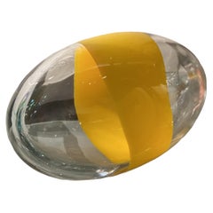 Die Vintage-Glasskulptur zeichnet sich durch eine zurückhaltende Ton-in-Ton-Farbpalette aus bernsteinfarbenem Glas mit zarten Blattgold- oder Aventurin-Akzenten aus. Das farbige Gla...
