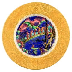 Antike kontinentale Maiolica-geformte, figurale Wandtafel / Schale, Luster