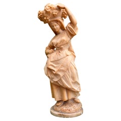 Diese bemerkenswerte antike Alabasterskulptur stellt eine heitere junge Frau in einem...
