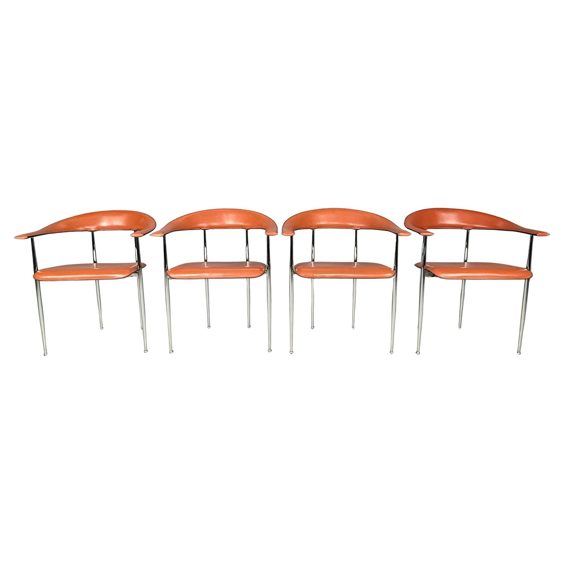Satz von 4 postmodernen Lederstühlen S-91 von Giancarlo Vegni für Fasem, Italien 1984