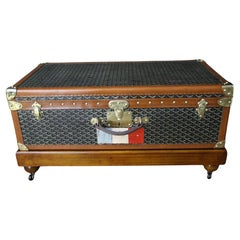 Goyard Cabin Trunk, 100 cm Goyard Trunk aus Chevrons-Leinwand, 1920er Jahre