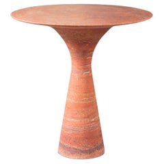 Studio-Keramik-Beistelltisch von Tyrone und Julie Larson USA ca. 1960er Jahre Handgedrehtes glasiertes Steinzeug mit konischem Sockel und runder Oberfläche mit konzentrischem Bandde...