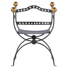 Stuhl im Salterini-Stil Diese ikonische Stuhlreproduktion hat die klassischen geflochtenen Gittereinsätze auf den Sitzen und an den Stuhllehnen. Die Gestelle haben eine handgehämmert...