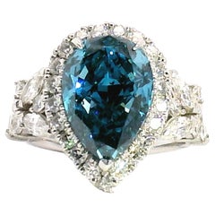 Blauer Saphir, Diamant, Silber, Sterlingsilber