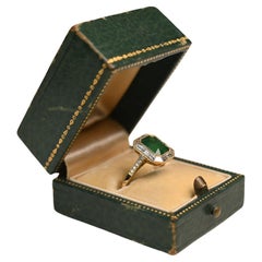 Antiker 15ct Gelbgold, georgischer Smaragd Diamant 7 Stone Ring