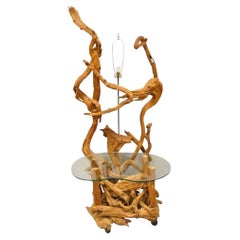 Ein toller, im Studio gefertigter Beistelltisch aus Walnusswurzelholz. Er ist aus dickem Nussbaumholz mit schöner Maserung gefertigt. Ein wirklich einzigartiges Stück.