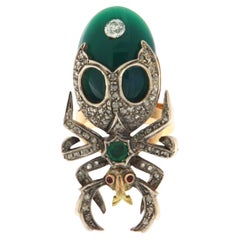 Rubin, Smaragd, Diamant, Chalcedon, Silber, Gelbgold, 9-Karat-Gold