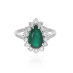 Smaragd, Diamant, Weißgold, 18-Karat-Gold