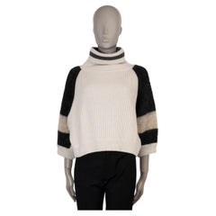 Brunello Cucinelli Kaschmir Streifen Pailletten Strickjacke Schwarz Weiß Pullover Med Large