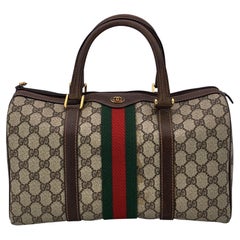 Gucci Vintage Blau Monogram Canvas Leder Web Boston Tasche 40