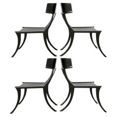 Fantastisches Paar Montecito Terrassen- und Gartenstühle aus Eisen nach Michael Taylor. Gefertigt aus Eisen in einer Gießerei in Los Angeles, Kalifornien, mit übergroßen Montecito-Ra...