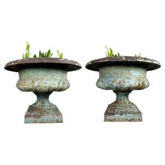 Paar kleiner englischer Urnen aus Gusseisen Jardinaires