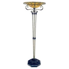 Skulpturale Stehlampe aus Bronze-Patina-Messing und Pergamentintarsien von Kifu Paris