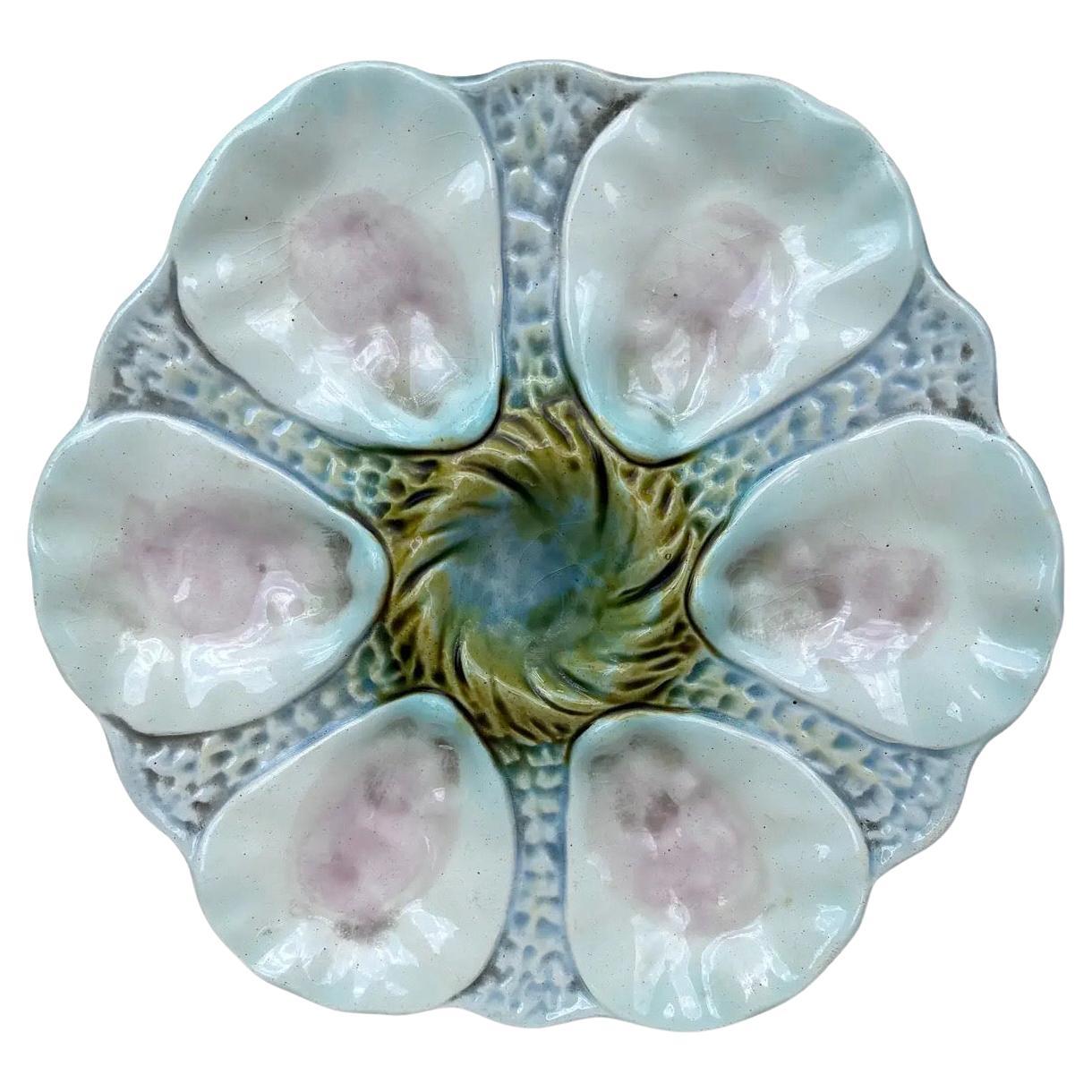 Majolika-Austernteller Keller et Guerin Saint Clement, um 1900.