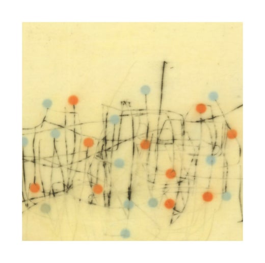 "Das Werk erinnert an die Arbeiten von Martin Puryear, Paul Klee, Alexander Calder und Tim Burton und spielt mit seinen klaren Linien und seiner minimalen Ästhetik auch auf die modernistische Architektur und Möbel des 20. Die gleichen akribischen und kontrollierten Elemente werden in den 5 x 5" großen Zeichnungen des Künstlers in Acryl, Graphit, Pastell, Farbstift und/oder Gouache auf Vellum verwendet. Die rhythmischen und dynamischen Arrangements von Linie und Farbe offenbaren eine makellose Beherrschung der Linie und des Gleichgewichts der asymmetrischen Formen." - Carl Hammer Galerie