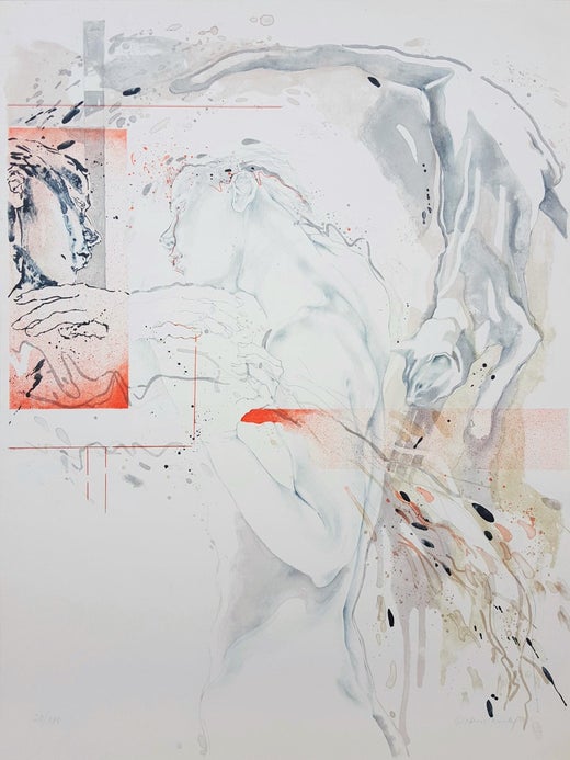 Erde /// Zeitgenössische Künstlerin Akt Frau Figurative Lithographie Moderne Kunst
