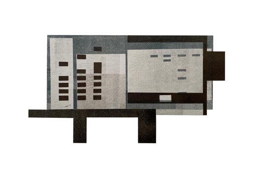 "Cabin I" ist eine vom Bauhaus inspirierte Monotypie und Collage (Arbeit auf Papier), die an die Ästhetik von Le Corbusier erinnert. Es ist Teil von Boutons Serie "Habitat and Urban Matter", die von den geraden Linien der modernistischen Architektur und den kantigen geometrischen Formen der städtischen Umwelt inspiriert ist. Bouton, eine französische Grafikerin aus Paris, die auch in London, Myanmar, der Elfenbeinküste, dem Senegal und der Türkei gelebt hat, schafft Werke, die auf ihre Erfahrungen auf ihren Reisen und die Kulturen, denen sie begegnet ist, reagieren. Seit sie sich in Philadelphia niedergelassen hat, lässt sie sich von der Urbanität der Stadt inspirieren, sei es ein schicker neuer Wohnblock, ein verlassenes Lagerhaus oder ein halb abgerissenes Haus. Ihre neuesten Arbeiten sind Interpretationen dieser Gebäude, sowohl mit breiten Straßenansichten als auch mit fokussierten Details einzelner Strukturen - das Muster der Skyline, ein Flickenteppich aus zerbrochenen Fenstern, eine industrielle Farbpalette. Sie interessiert sich für die Geschichte der Räume und das Leben, das in diesen Gebäuden stattfindet, sowie für die Schönheit der Strukturen, unabhängig davon, ob diese Schönheit aus dem Design oder dem Verfall oder einer Kombination aus beidem resultiert. Unterzeichnet und datiert.