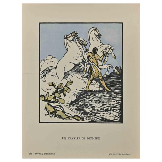 Les Cavles de Diomède ein Original-Holzschnitt von Carlègle (Charles Emile Egli, 30. März 1877 - 11. Januar 1937).