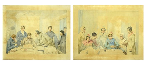 Lithografien teilweise in Farbe gedruckt, von Hand bearbeitet