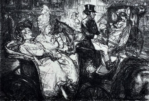 Fifth Avenue Critics. 1909. Radierung. Morse 128.x/xi. 6 x 8 (Blatt 9 3/4 x 12 1/4). Auflage 100 in diesem Zustand (einige wenige Probedrucke in früheren Zuständen und eine große uns...
