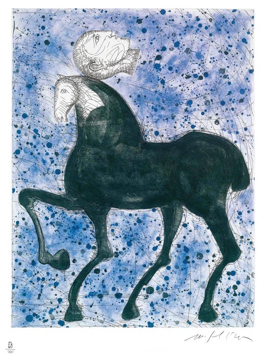 Mimmo Paladino (geb. 1948, Italien) spielte neben Sandro Chia und Francesco Clemente eine zentrale Rolle bei der Entwicklung der Transavantgarde-Bewegung. Die Transavantgarde, die als italienische Version des Neo-Expressionismus gilt, belebte die Emotion, die Figuration und den Mystizismus in der Kunst neu. Paladinos Skulpturen, Gemälde und Drucke verweisen oft auf vergangene kunsthistorische Traditionen und modernisieren die Ikonografie mit einer klaren, anmutigen Verlängerung. Paladino besuchte die Kunsthochschule Benevento, wo er von den Pop-Künstlern Claes Oldenburg und Jim Dine beeinflusst wurde. Der Künstler hat international ausgestellt, unter anderem 1980 auf der Biennale von Venedig und 1982 auf der documenta VII. Seine Werke befinden sich in bedeutenden Sammlungen weltweit, darunter das Hirshhorn Museum and Sculpture Garden (Washington, D.C.), das Metropolitan Museum of Art (New York), das Museum of Fine Arts (Houston) und die Tate Modern (London).