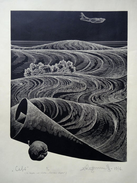 Tag des Sonnenuntergangs. 1984. Papier, Linolschnitt, 20x34 cm