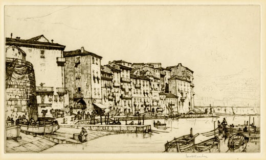 Der Architekt und Grafiker Louis Conrad Rosenberg wurde in Portland, Oregon, geboren. Rosenberg, der ein Stipendium des Architectural Club of Portland erhielt, besuchte das Massachusetts Institute of Technology. Nach seinem Abschluss 1914 erhielt Rosenberg ein Reisestipendium für Architektur. Nach dem Krieg reiste er durch England, Europa, den Nahen Osten und Nordafrika und fertigte Tausende von Skizzen an. Rosenberg begann seine ersten Experimente mit der Radierung während seines Studiums an der American Academy in Rom im Jahr 1921, wo er auch eine Ausstellung hatte. Auf seine Drucke wurde Muirhead Bone aufmerksam, der ihn bei einem Besuch in New York aufsuchte und ihm vorschlug, sich ernsthafter mit der Radierung zu beschäftigen. Bald nach dieser Begegnung trat Rosenberg in die Schule für Gravur am Royal College of Art in London ein, wo er innerhalb eines Jahres 20 hervorragende Platten anfertigte und seine Karriere als Grafiker begann. Nach seiner Rückkehr in die Vereinigten Staaten nahm er einen Lehrauftrag für Architekturdesign an der Universität von Oregon an. Für die American Etchers Series erhielt er den Auftrag, die bestehenden Anlagen, neuen Strukturen und Abrisse des Cleveland Railroad Terminal darzustellen. 1930 nahm Rosenberg einen ähnlichen Auftrag für das Cincinnati Union Terminal an, der einige seiner besten Arbeiten hervorbrachte. 1946 trat er in das New Yorker Architekturbüro Sawyer and York ein und blieb dort bis zu seiner Pensionierung. Rosenberg, der für seine tadellose Kaltnadeltechnik, seine makellose Komposition und seine sensiblen architektonischen Darstellungen weithin respektiert wurde, erhielt zahlreiche Medaillen und Auszeichnungen. Er war emeritiertes Mitglied des American Institute of Design und Senior Fellow der Royal Society of Painters, Etchers and Engravers. Rosenberg war auch Mitglied der Brooklyn Society of Etchers, der Chicago Society of Etchers, der Philadelphia Society of Etchers and Engravers Associates und des Chelsea Arts Club, London. Rosenberg erhielt 1924 eine Silbermedaille von der Printmakers Society of California.