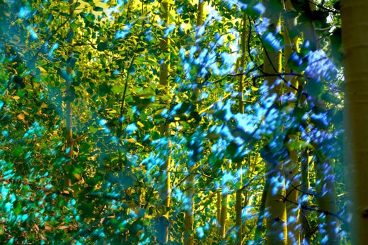 Leah Oates verwendet eine doppelte und manchmal dreifache Belichtung, die Lichthöfe, gesprenkelte, neblige Oberflächen und hauchdünne Effekte in gedämpften Grün- und Blautönen erzeug...