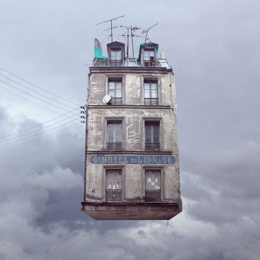 Die Sammlung von Surrealist Bildern, bei denen Gebäude aus ihrem Hintergrund entfernt und dann in den Himmel gehängt werden, als ob sie permanent in der Luft schweben, begann mit Zeichnungen, bevor Chéhère die einzelnen Komponenten der Werke fotografierte und in Adobe Photoshop Montagen erstellte.