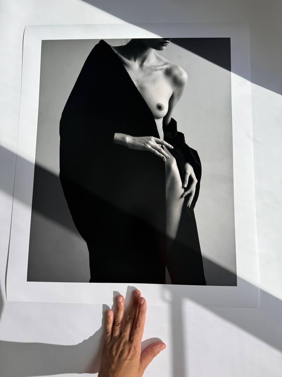 Valérie-Signierter Kunstdruck in limitierter Auflage, Schwarzweißes quadratisches Foto, Sensual