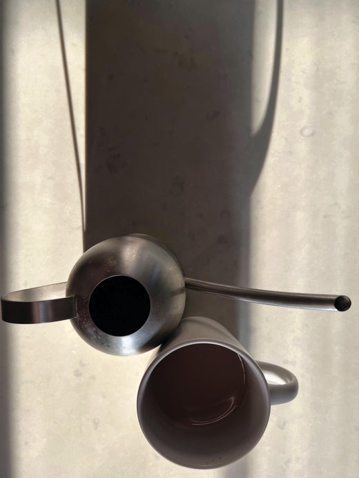 Blumentöpfe und Tomaten: Stillleben-Farbfotografie mit abstrakten Schattenmustern, lg