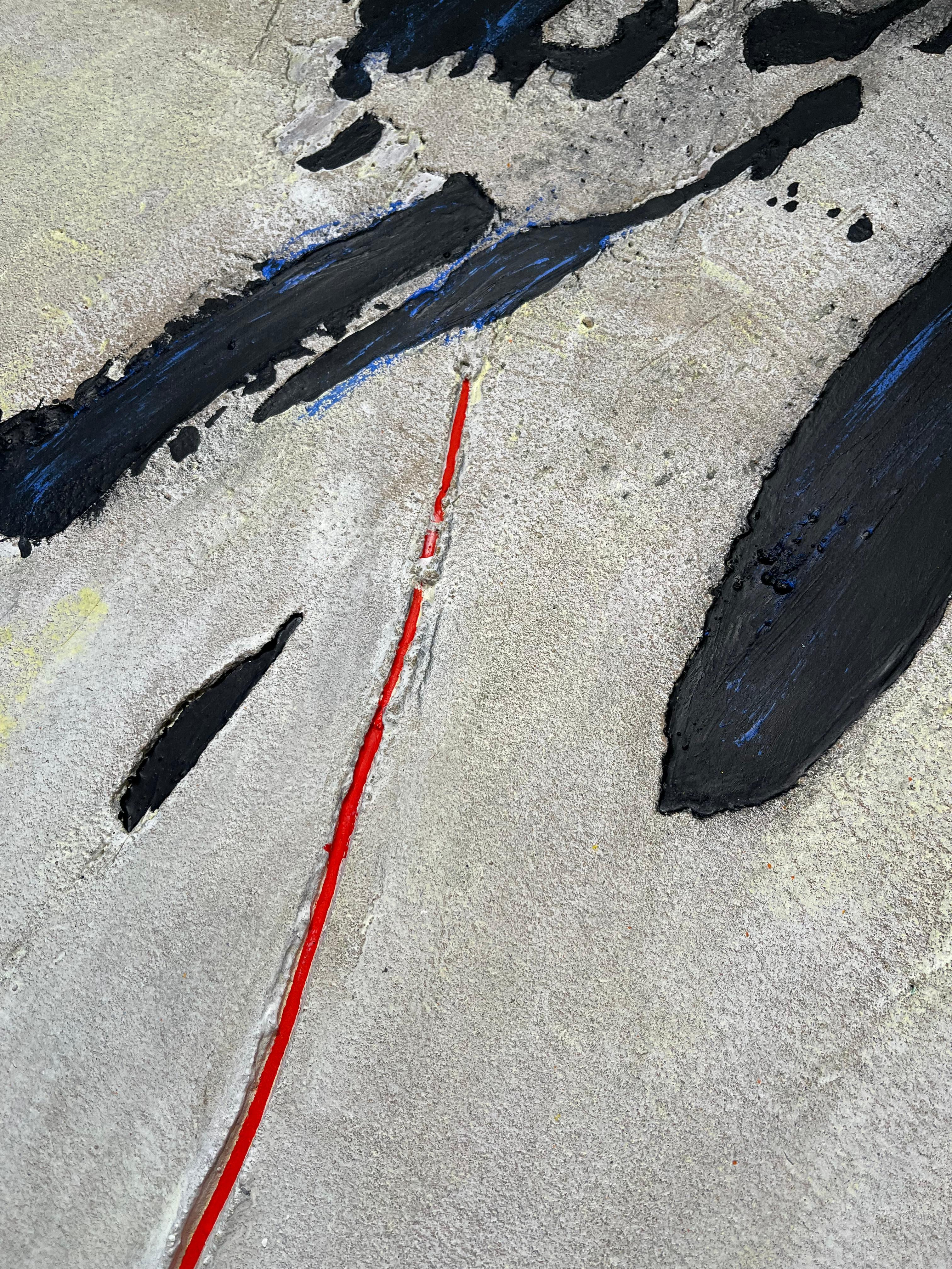 Die fortwährende Forschung des Künstlers zu Erinnerung, Schichtung und Offenbarung, die im Mittelpunkt seiner jüngsten Projekte steht, zeigt sich hier im Wechselspiel zwischen verschleierten und freigelegten Oberflächen. Subtile Transparenzen, Texturanhäufungen und abrupte Tonverschiebungen laden den Betrachter ein, das Gemälde fast wie ein Palimpsest zu lesen: eine Oberfläche, auf der Spuren bleiben, sich überlagern und im Laufe der Zeit wieder auftauchen.