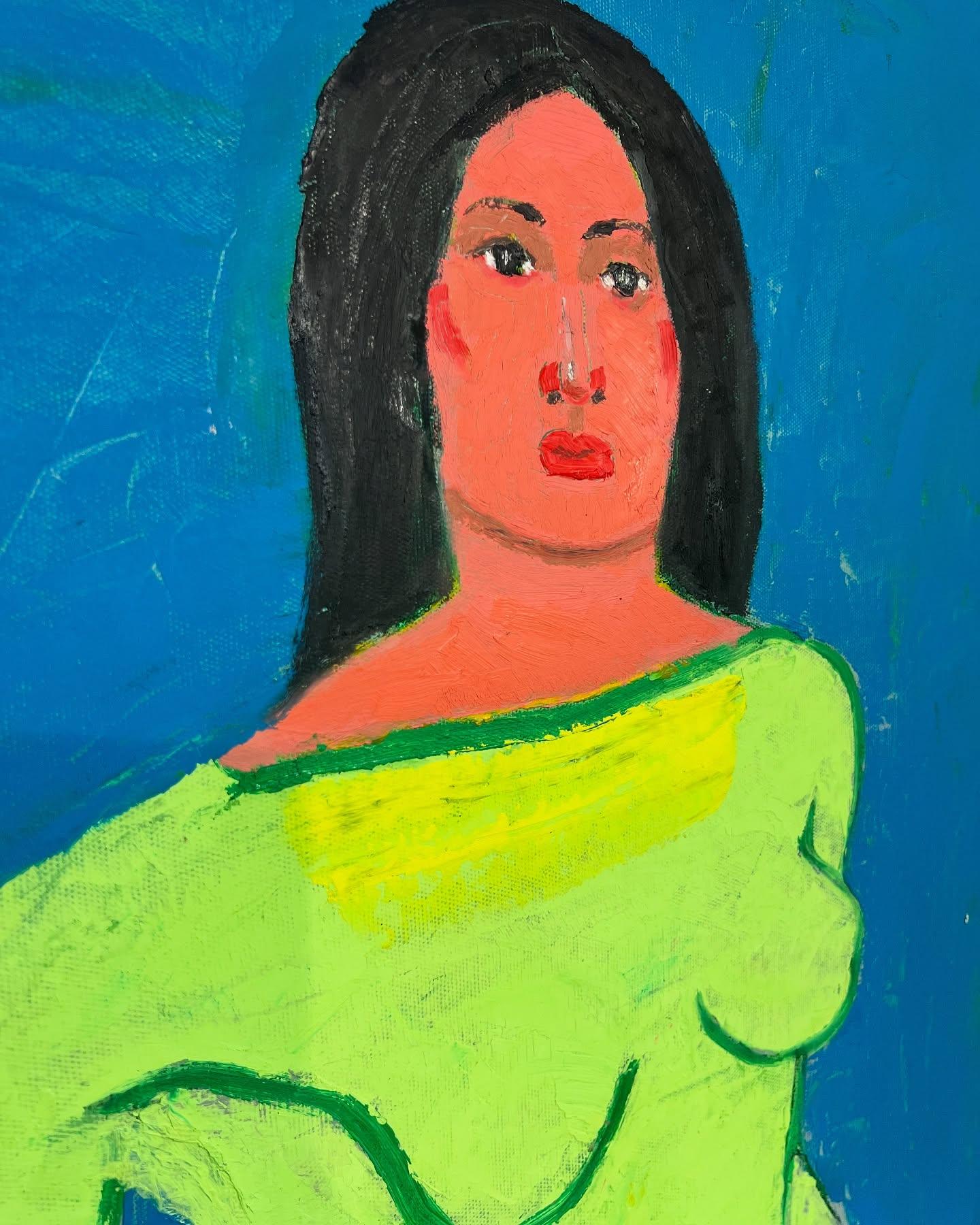 Frau in Grün, Gemälde, Öl auf Leinwand