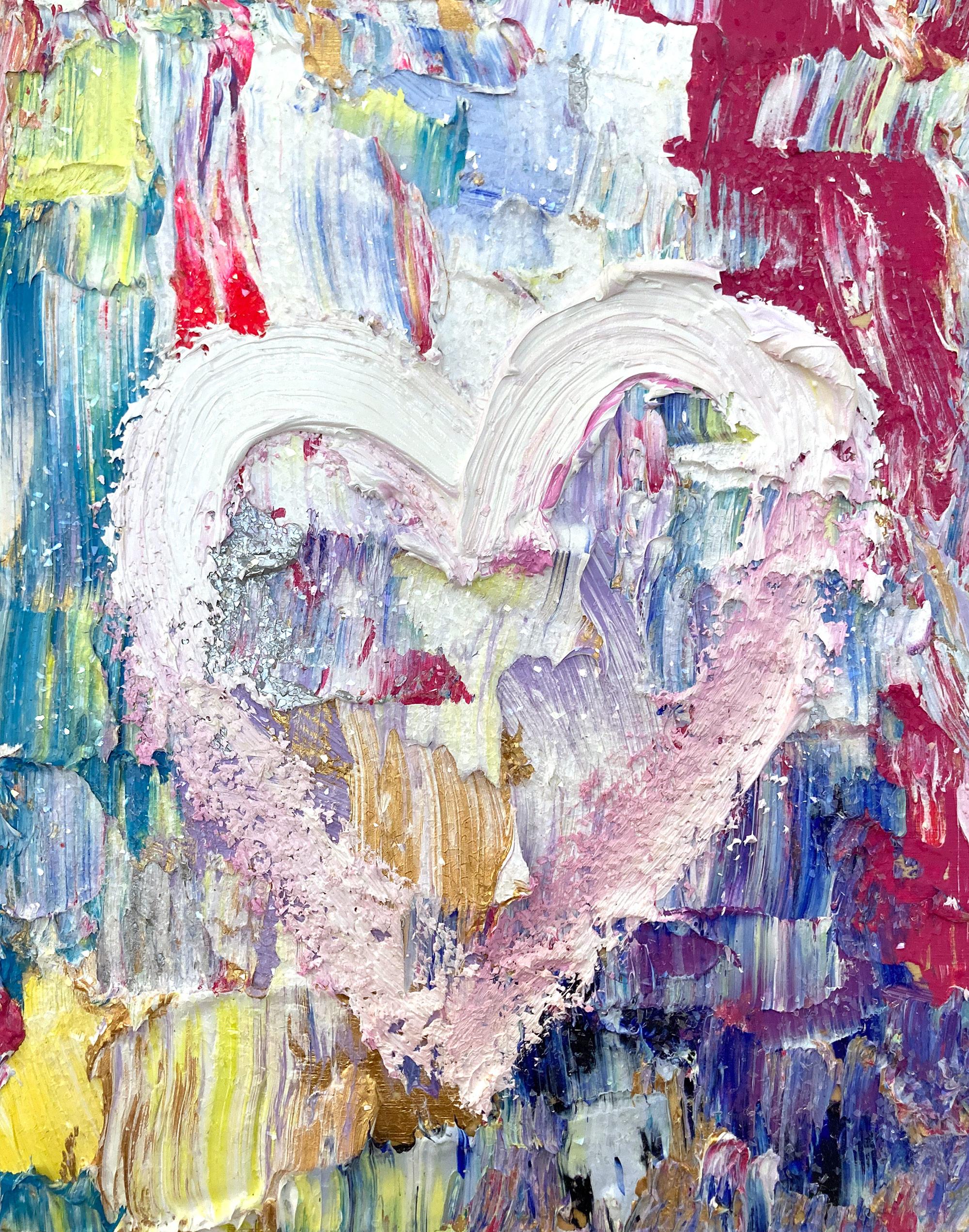 Cindy Shaoul"My Saturday Night Fever Heart" Pop-Ölgemälde auf Holz Weiß Floater Frame2025