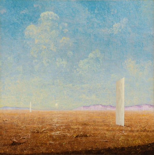 „Machinations of the Mind No. 3“ – Abstrakte surrealistische Landschaft in Öl