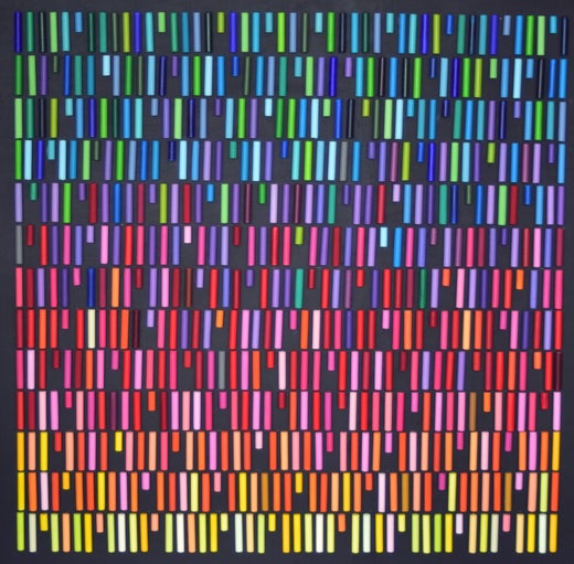 In ihren neuesten Bildern können wir eine besondere Kombination aus Vergangenheit und Gegenwart erkennen. Die Naturmotive verschwinden vollständig und machen der Abstraktion Platz. In ihren neueren Arbeiten konstruiert sie autonome, nicht-figurative künstlerische Formationen und erweitert damit die Perspektiven ihres künstlerischen Schaffens. Diese Werke können als lyrisch ungegenständlich definiert werden. Mit ihrem fundierten Wissen in der klassischen Kunst und ihrer Expertise ist sie ständig auf der Suche nach neuen Wegen und Möglichkeiten für Innovationen. In der gegenwärtigen Phase dieses Prozesses, in der sie die bildliche Darstellung des Universums erforscht, möchte sie dessen dramatische Triebkräfte darstellen. Auf dem schwarz-weißen Grundtonhintergrund blitzen reiche, koloristisch-ungegenständliche Formen auf, die die Unendlichkeit des intellektuell fassbaren Universums darstellen. Parallel dazu schafft sie Kugeln in verschiedenen Farben, die fast lebendig werden und ein Eigenleben führen. Damit erscheint die Vereinigung von Plastischem und Malerischem, in einer sphärischen Form, die räumliche Darstellung der früheren flächigen Inhalte als neues Phänomen in der Kunst von Erika Baktay. Diese Arbeiten bewegen sich an der Grenze von Plastik und Malerei. Ihre Elemente bieten die Möglichkeit zur visuellen Darstellung von Bewegung und Licht und schaffen so ihren eigenen Mikrokosmos. Die Kunstwerke von Erika Baktay sind hervorragende Dokumente für die herausragenden Leistungen einer sensiblen Künstlerin. Dr. Maria Anka Kunsthistorikerin.